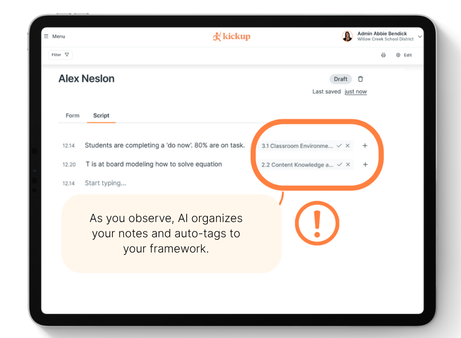 KickUp is the modern PD, Coaching, Walks, and Evaluation system that saves you hours each week and finally connects the dots between PD and teacher performance.